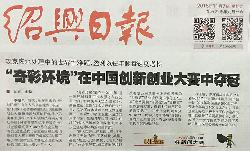 “奇彩環境”在中國創新創業大賽中奪冠